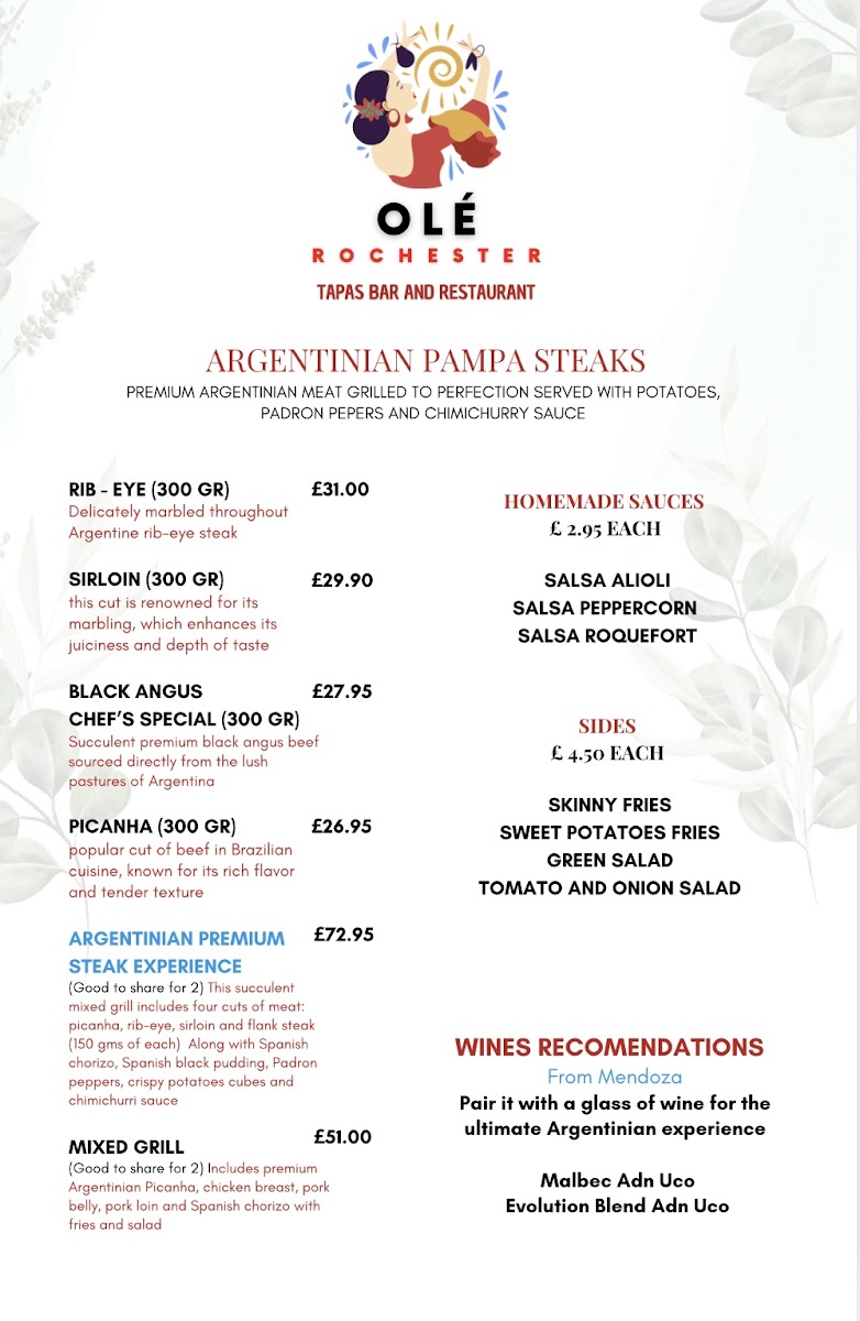 Welcome to Olé Rochester, a gastronomic gem nestled in the heart of Rochester, UK. This vibrant eatery specializes in authentic Argentinian steaks and flavorful Spanish dishes, setting a benchmark for culinary excellence in the area.